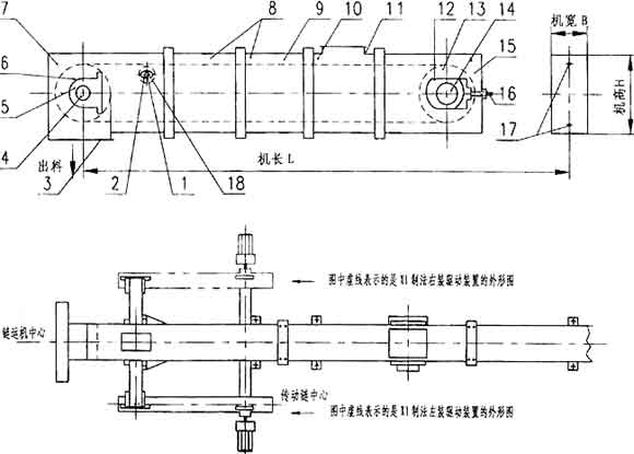 ??根據輸送量,輸送長度和工藝狀況參照表3-7選擇動力。驅動裝置的裝配形式分為X1、X2及左右裝等,X2為背裝式。