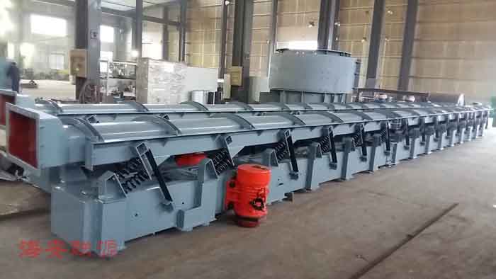 慣性振動輸送機主要是利用振動電機為驅動源長距離的輸送粉狀,顆粒狀物料。慣性振動輸送機利用料槽的振動使料槽中的物料從入料口快速輸送到出料口,可以用來輸送塊狀、顆粒狀或粉狀、常溫或高溫的各種物料。 慣性振動輸送機有敞開式、封閉式兩種,料槽橫截面可以做成圓形、矩形和梯形等多種型式。料槽的進料和出料也可根據(jù)需要制成一點進料、一點出料,一點進料、多點出料,多點進料、一點出料等多種型式。輸送距離較長時可用多臺輸送機連接起來輸送。